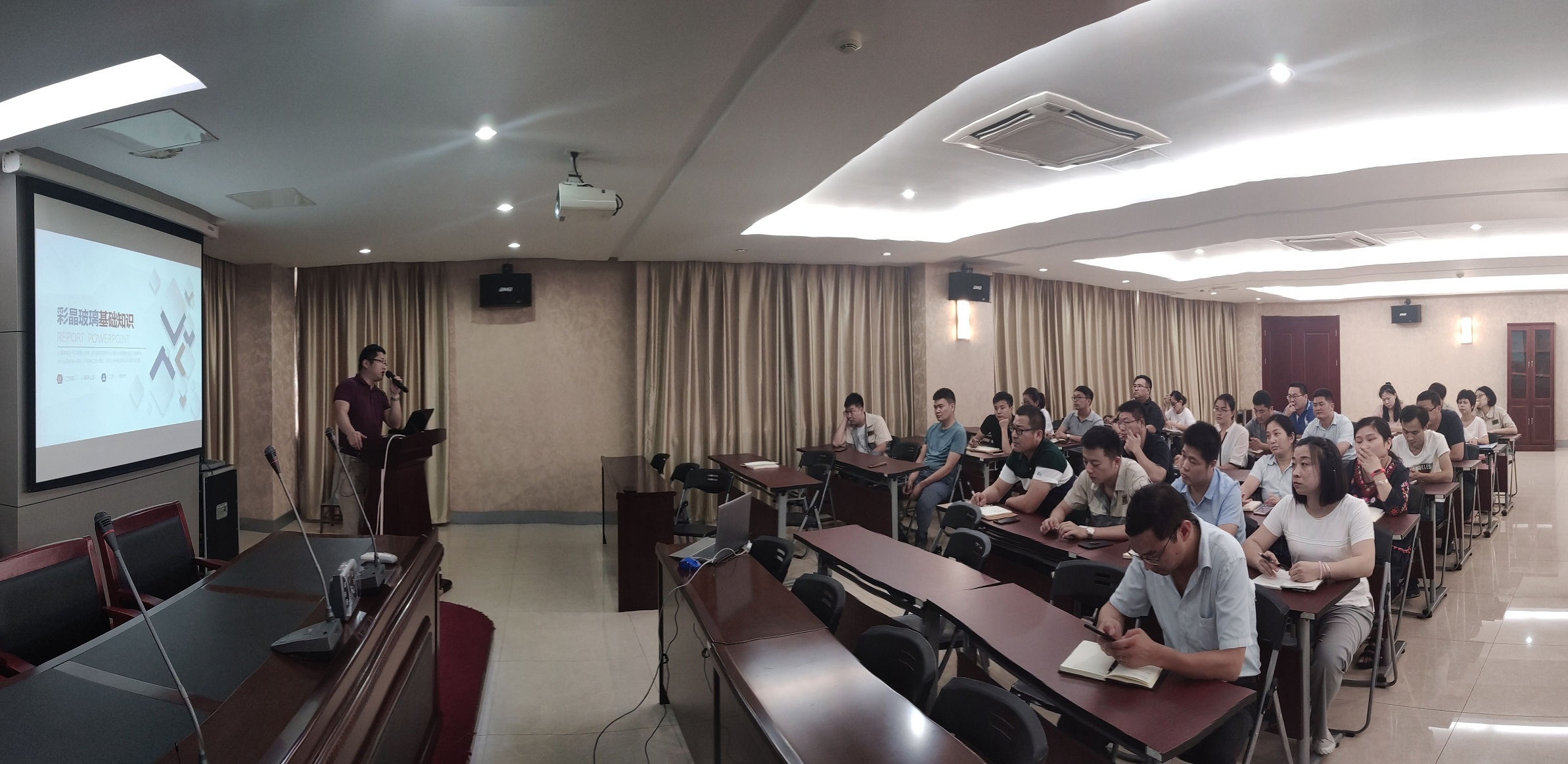 7月17日下午,合肥高科進行了業(yè)務(wù)知識培訓(xùn)第七講:彩晶玻璃基礎(chǔ)知識培訓(xùn),主講人是彩晶事業(yè)部魏部長。魏部長圍繞著彩晶玻璃的應(yīng)用、生產(chǎn)過程、主要客戶以及競爭對手、彩晶的產(chǎn)能及利潤構(gòu)成,分別展開了詳解。